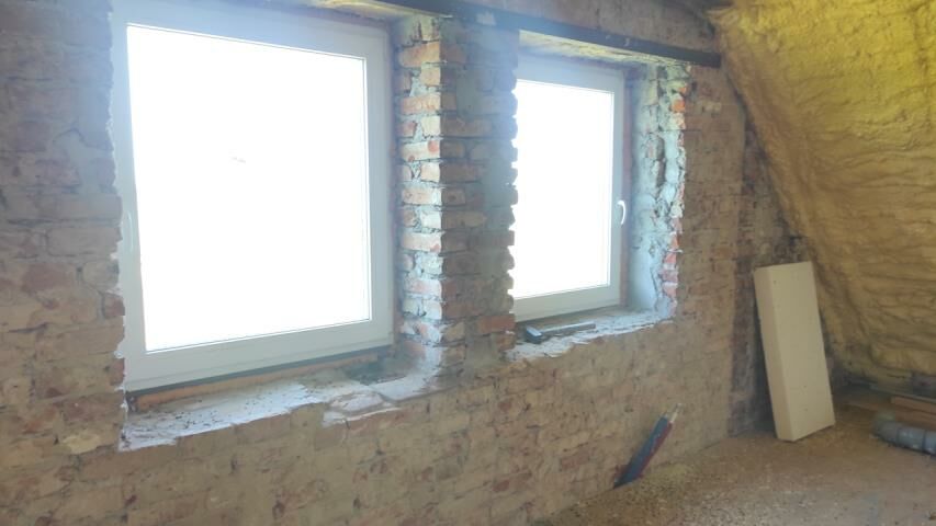Na poddaszu ułożona jest nowa podłoga z płyty OSB, wyprowadzona jest instalacja grzewcza oraz sanitarna. Ponadto poddasze ocieplone jest pianką PUR i umieszczony jest nowy wkład kominowy.